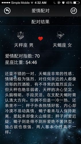在相处过程中,男会努力满足天蝎座女的占有欲,给予她足够的安全感。而天蝎座女则能够帮助天秤座男坚定信念,勇敢面对生活中的困难。这种相互扶持、共同成长的关系,使得他们之间的感情更加稳固。