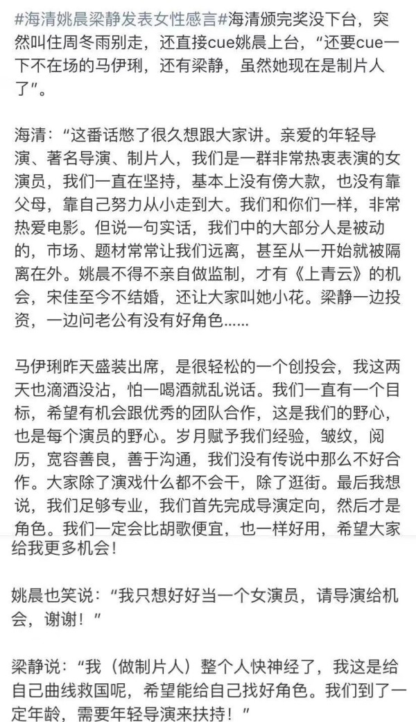 尽管众多媒体纷纷转载并表示同情,但海清的发言意外地揭示了娱乐圈女明星们真实的生存状况。
