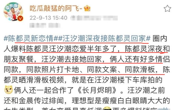 于正曝陈都灵汪汐潮分手!称自己撮合过两人,并透露分手原因
