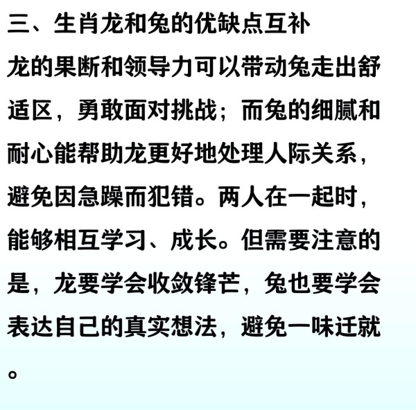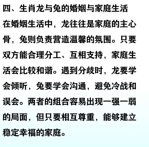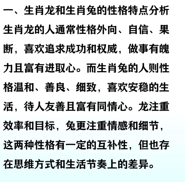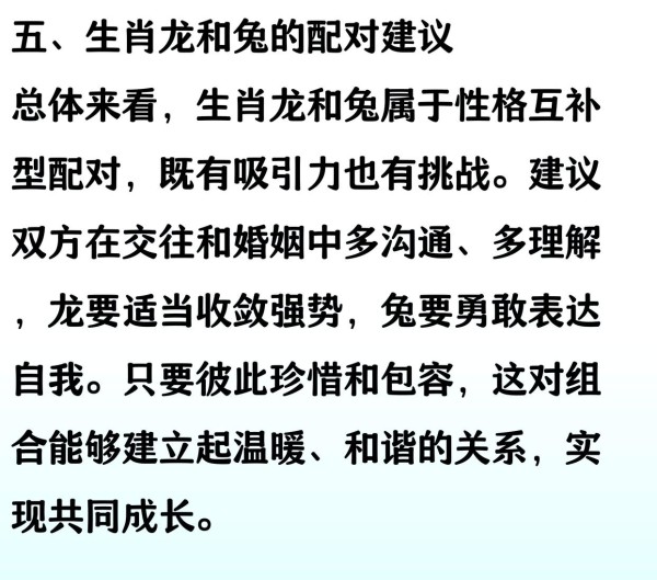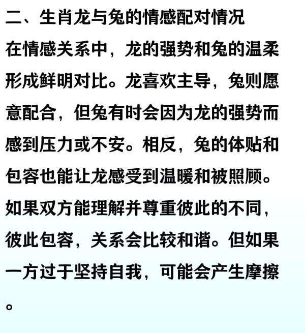 由此可见,只要龙与兔能够互相包容并支持,便能建立稳固幸福的关系。