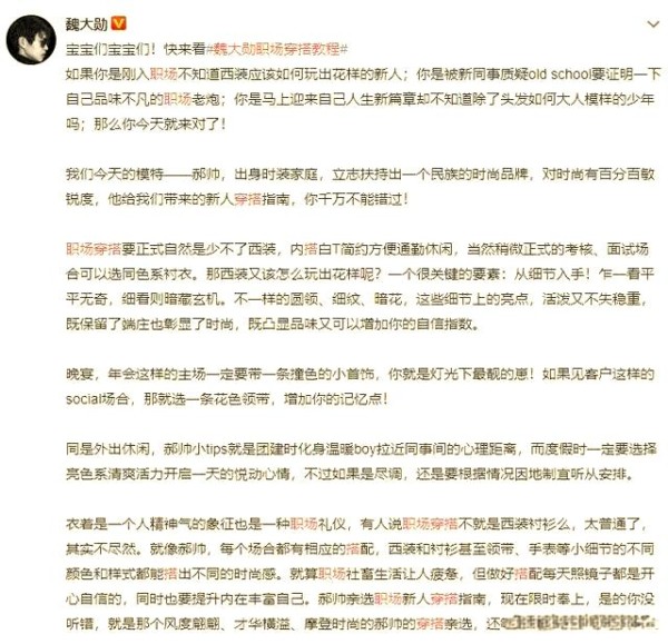 不仅王一博和尹正因一小撮粉丝的吐槽而被质疑“塑料兄弟情”,如今,“敬亭山上”的魏大勋和白敬亭也面临了类似的质疑。起因是魏大勋发布的一条热搜微博,虽然配图明确标注了“P凡的荣耀”,但长篇文案中却只字未提白敬亭,这引发了一些粉丝的不满。