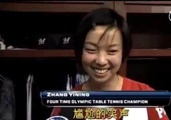 张怡宁则谦虚表示:“很好,就像正手就不错,反手嘛,还得再练练。”随后,传来了她尴尬的笑声。