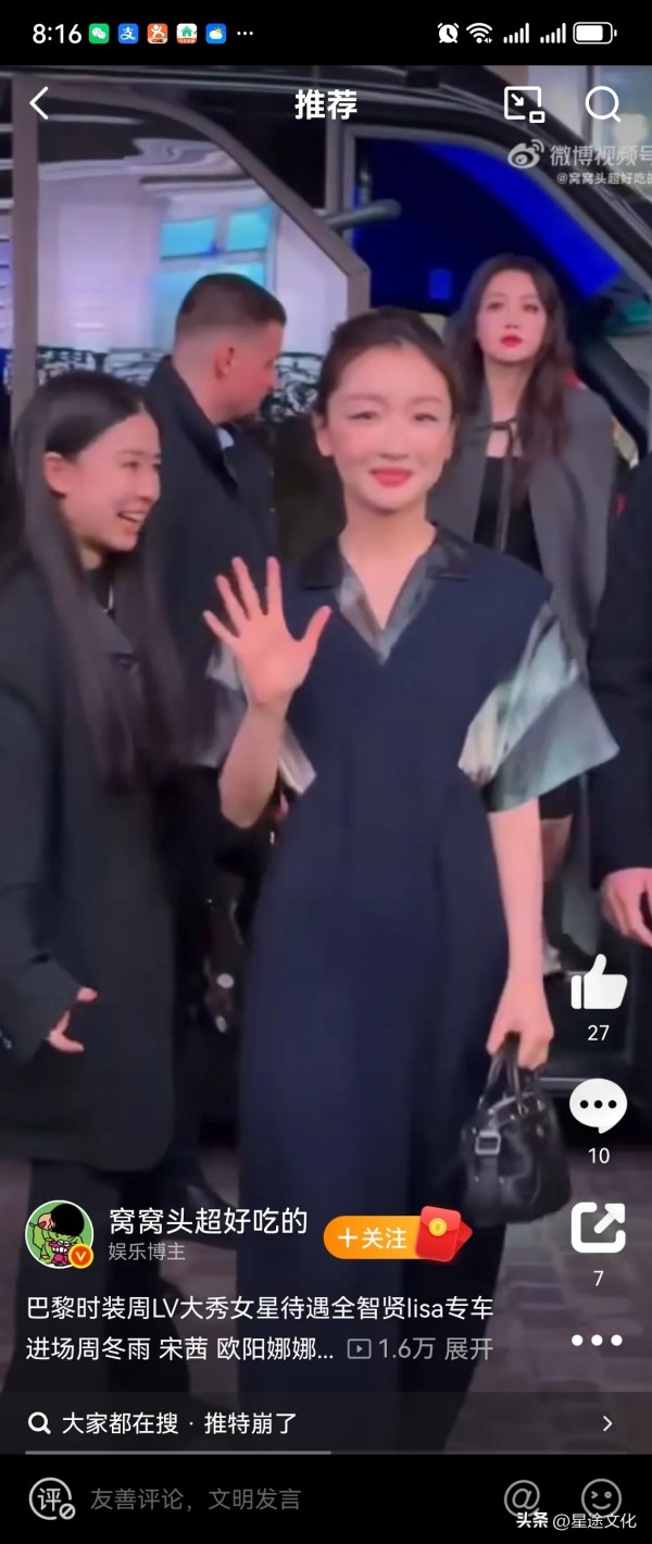 LV巴黎时装周中国女明星遭区别对待,Lisa、全智贤都是专车接送,周冬雨、宋茜、欧阳娜娜却只能共坐大巴车。