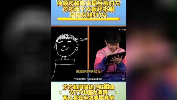 孙颖莎和陈幸同互画对方!莎莎两个大板牙抢眼,同同只给打1分