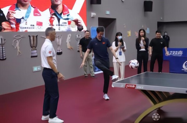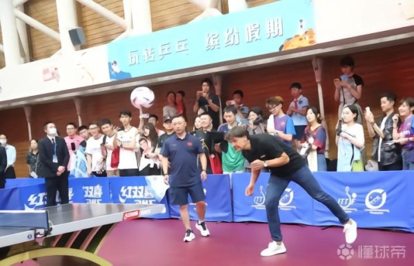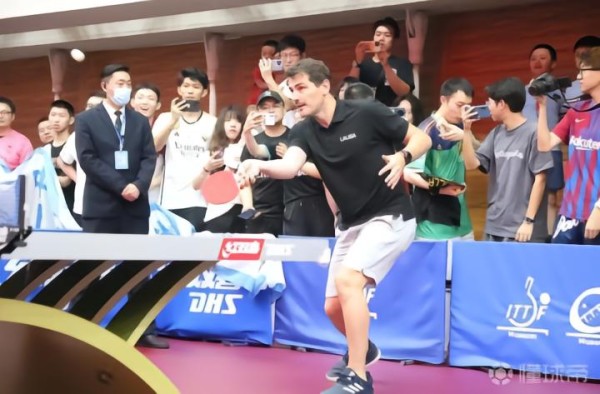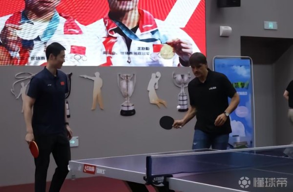 跨界联动,卡西等传奇球星和王励勤打乒乓球