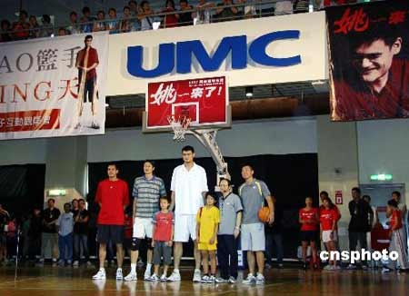 姚明在离台前9日参加唯一一场篮球赛,不少球迷在球赛开打前就抵达球场,就是为了一赌姚明风采。姚明旋风席卷球场,姚明参加两岸篮球交流比赛,在台大体育馆与前上海大鲨鱼队友郑志龙、星光帮成员许仁杰等组成一队,对上由“台湾飞人”陈信安领军的包括周俊三、陈子威王志群等SBL明星队,吸引了大批球迷,到场观赛,现场气氛热络。