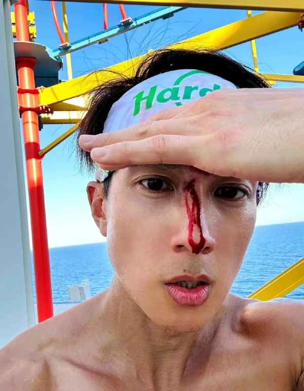 吴尊陪儿女打篮球受伤留疤 血从鼻梁伤口流下仍淡定自拍