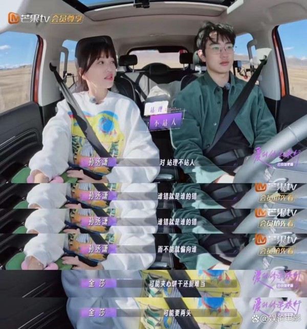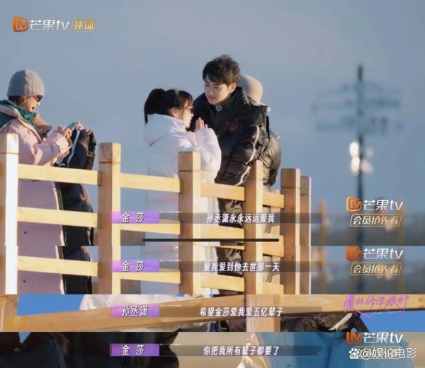 在节目更新里看到金莎给孙丞潇擦拭眼睛,因为他给大家做饭,导致眼睛进了辣椒,金莎还是很照顾他的。一般情况下都是孙丞潇照顾金莎,换成金莎照顾孙丞潇,还是有点不习惯。
