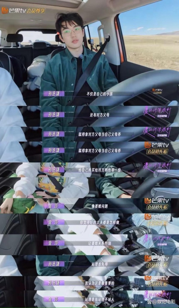 孙丞潇的说法总结为四大点,就是两人心有灵犀,有责任感,为对方着想,对双方父母一视同仁。