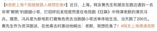 冯兵化身跑腿小哥,体验生活为新角色做准备!网友偶遇老默冯兵低调做跑腿,优秀演员懂得从生活中汲取灵感!