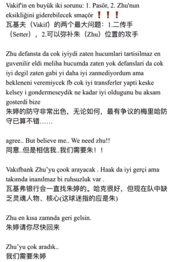 除了韩国小帅哥,朱婷之前效力的瓦基弗银行俱乐部和球迷,也念念不忘朱婷!世界杯之前,瓦基弗银行通过土耳其驻华大使馆发布文章为《你知道朱婷在土耳其有多火吗?》!