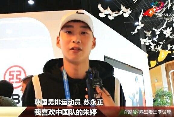 朱婷目前已经成为中国女排标志性的人物,并且女排从世界杯回国后,朱婷一直成为球迷们的焦点人物,一直活跃在各种社交媒体的头版头条,然而对于优秀朱婷而言,并不缺乏爱慕者。这不,韩国男排球员苏永正公开示爱朱婷!韩国男排因在军运会的表现令不少球迷唾弃,因为当时代表中国出战的八一男排3-1击败韩国男排,因此获得本届军运会的冠军。