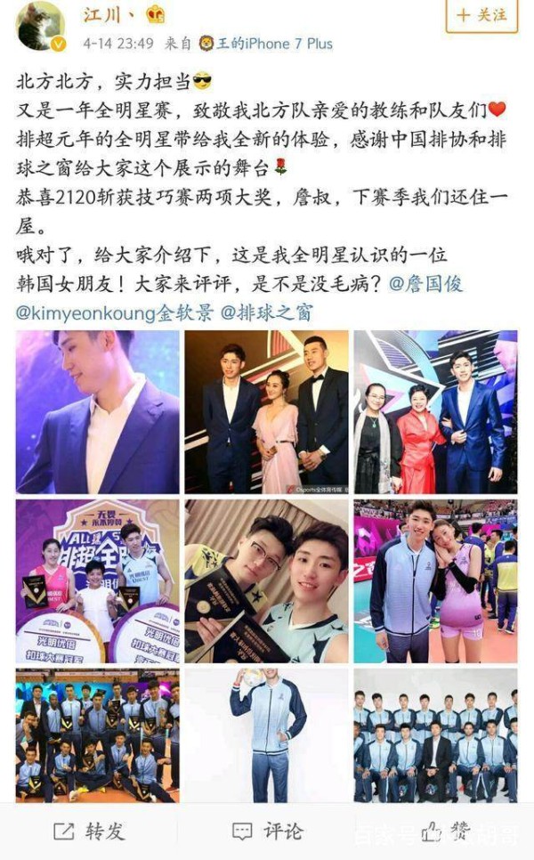 中国男排江川与韩国女排一姐微博互相“示爱”,网友:在一起!