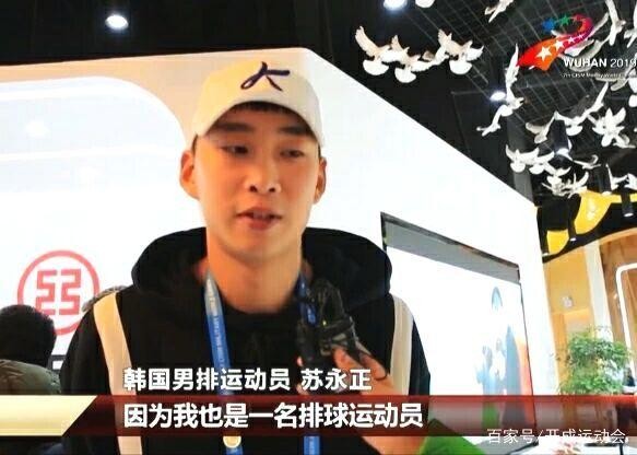 军运会结束,韩国男排运动员苏永正面对媒体,这名韩国小帅哥表示:我喜欢中国队的朱婷,因为我也是一名排球运动员;这儿的设施很好很方便。