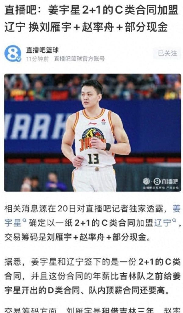 一张姜宇星穿着辽宁训练服的照片突然在球迷群里炸了,照片背景里辽宁队的LOGO墙还没拆包装膜,但大姜的笑脸已经明晃晃地挂在热搜第一。吉林球迷在官微下面刷了三百条“感谢老铁”,辽宁球迷回敬“十年兄弟一杯酒”,可转头就有人扒出姜宇星新合同年薪550万,比吉林给的顶薪还高出50万。