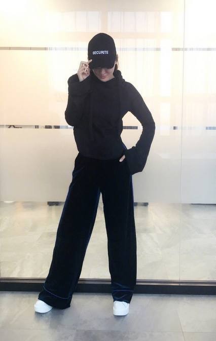 富有动感活力的阔腿裤碰撞上丝绒的面料,呈现出低调却很叛逆的气质,在配上一个活力十足的棒球帽单品,看上去满满的动感!