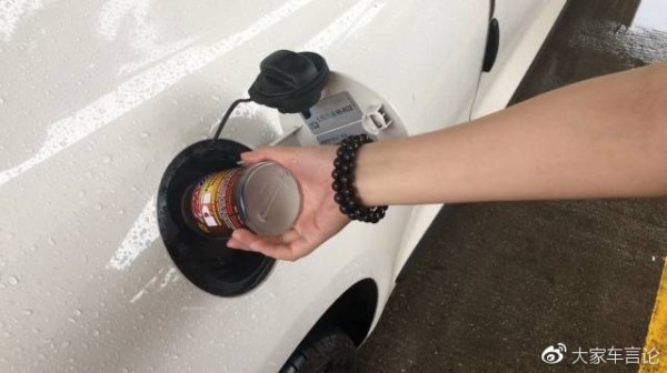 打开盖子,撕掉封口薄膜,捅进汽油加注口,咕咚咕咚咕咚……搞定了,手都不带脏的。