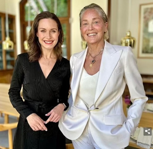 前芬兰女总理与美国女星莎朗·斯通会面,前政治家想转战好莱坞?