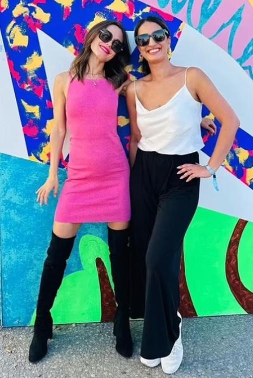 桑娜还在社交媒体上分享了她与《本能》女演员莎朗的合照,而令人意外的是,65岁的莎朗甚至不停地夸她,“太酷了,太聪明了,太漂亮了”“这对男人们来说肯定太难应付了。”