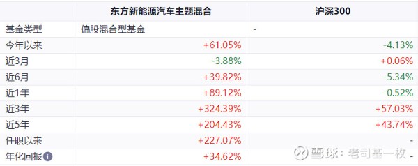 李瑞目前只管理了东方新能源汽车主题这一只基金,任职总回报高达227.07%,任职年化达34.62%。从各区间段业绩表现来看,该基金表现都是相当惊艳,近3年回报达到324.39%,2021年收益率为61.05%,均大幅超越同期沪深300指数涨幅。