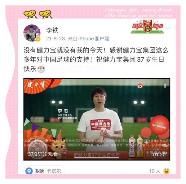 不过,在11月26日的检索中,我们发现健力宝和李宁的官方微博已不再提及李铁,而李铁本人在2022年的微博中也已删除了与这些品牌的关联内容。值得一提的是,健力宝与李铁的渊源深厚,可以追溯到1993年的“健力宝青年队”时期,这一历史渊源为后来的代言合作奠定了基础。2020年8月,李铁担任国家队主帅后,再次与健力宝携手,推出了一款联名罐,进一步加深了双方的合作关系。