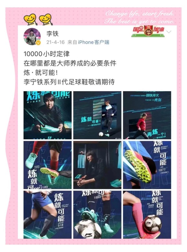同样,李宁与李铁的合作也颇为长久。在李铁效力于英格兰顶级联赛球队埃弗顿期间,他便成为了李宁足球系列产品的代言人,并签约了专业足球产品,打造了独特的“铁系列”球鞋。尽管李铁后来退役并转行做教练,但与李宁的合作并未终止,他依然为“铁系列”的复刻版装备站台助力。2021年10月,李宁与李铁的合作进一步深化,双方签署了一份终身合同。虽然具体合同金额和年限未予公布,但参照国际知名品牌与梅西、C罗、詹姆斯、麦迪等巨星的终身合同,以及李宁与韦德的类似合作,预计这份终身合同的合作年限至少将达到20至25年。同时,考虑到中国现役足球和篮球运动员通常的代言费用多在500万元左右,据此估算,李铁所签订的这份终身合同金额将远超亿元。