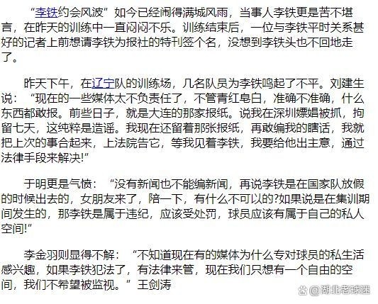 然而,这位别人家的牛娃,最终倒在了利益面前。目前得到的消息,虽然多位高层曾出面力保他,但现在已经有很多人想要割舍与他的关系。随后,李铁的更多新闻被挖出。其中,最知名的就是2000年睡粉一事。当时媒体并不发达,仅有四川《成都商报》、云南《生活新报》和大连《半岛晨报》等少数媒体跟踪报道了该事件。这也是为何,一天前湖北老球迷讲解这件事的时候,成都、大连和昆明球迷印象最深刻的原因。