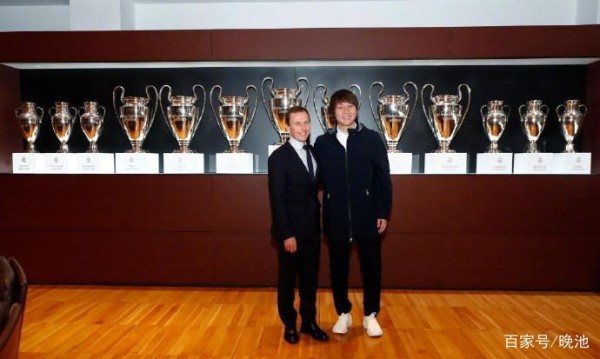 陪同李铁参观世界超级豪门皇马的则是当年的世界级球星布特拉格诺,有着秃鹫之称的布特拉格诺是皇马五鹰之一,帮助皇马夺得过西甲联赛冠军,个人拿过西甲最佳射手,随西班牙国家队拿过世界杯银靴,2012年入选了FIFA名人堂,现为皇马俱乐部公关部长。这位昔日球星与李铁在著名的伯纳乌球场拿着特制球衣合影,并带着李铁参观了皇马的荣誉室,皇马曾13次获得欧冠冠军,是获得该项冠军最多的俱乐部。