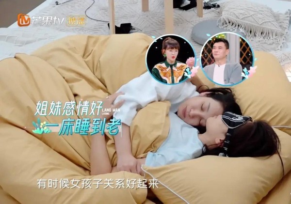 女明星之间的真假姐妹情一看便知。秦海璐和刘涛原本一人一个大单间,但到了晚上,秦海璐直接跑到刘涛的床上。刘涛带着眼罩,像哄小孩一样哄着秦海璐。