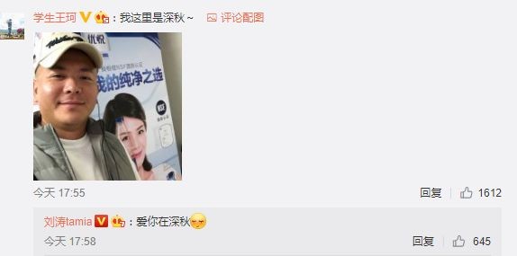 模范丈夫王珂也在第一时间也晒出了一张自己的照片并且评论道“我这里是深秋”,这是实力配合妻子的感觉啊,真的有种同甘共苦的感觉!刘涛也回复说“爱你在深秋”,这波狗粮撒的真的猝不及防啊!