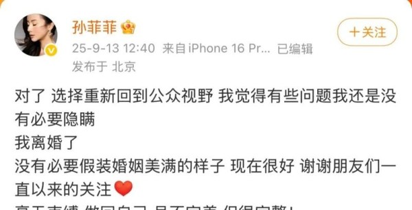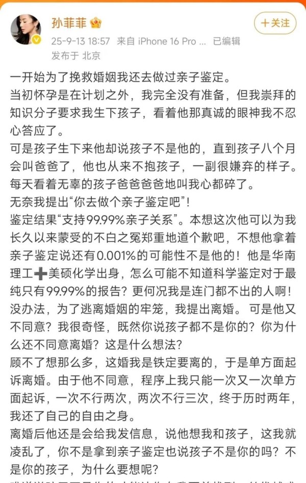 演员孙菲菲官宣离婚,曾为了挽救婚姻去做亲子鉴定,网友:离得好孙菲菲说为挽救婚姻做过亲子鉴定!