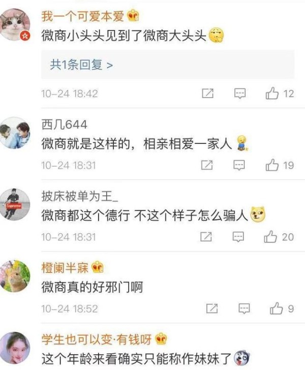 同时也有网友认为这或许是微商的一种宣传方式,以此来拉近他们一家和微商分销商的关系,也可以借此事件进行炒作,吸引吃瓜群众的关注度,为之后微商产品的宣传奠定基础。