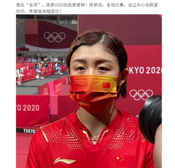 7月26日,女乒名将陈梦在东京奥运会首秀便以4比0的好成绩完胜对手,一时引起了网友的热议。