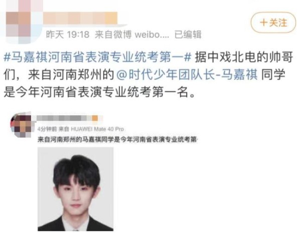 眼瞅着高考所剩时日不多,艺考也已经结束了,那些备受关注的艺考生成绩也随之曝光,马嘉祺也在其中,虽然经历过失败,但是他不负众望考取了理想的成绩,不过众人对他的评论却从未停止。