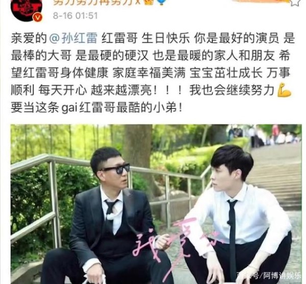 张艺兴连续10年为孙红雷庆生 网友:是最棒的友谊!一直是好兄弟!
