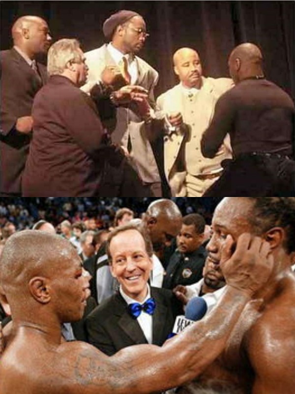 就当大家以为两个人肯定已经仇深似海了,就连泰森也说当时在台上想杀了霍利菲尔德的心都有。不过在两个月后,两人又坐在一起喝啤酒了。