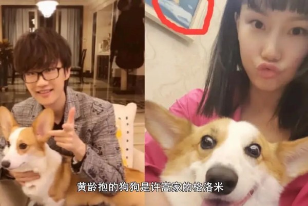 2020年11月2日,黄龄在社交平台发了抱着狗狗的照片,网友们一眼认出黄龄抱的是许嵩的,黄龄后面的背景墙和装饰与许嵩家的相同。