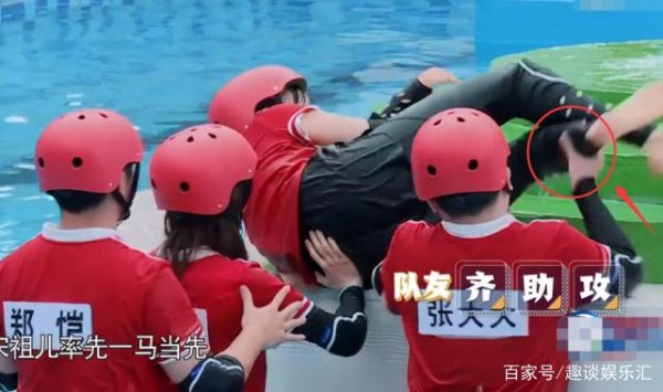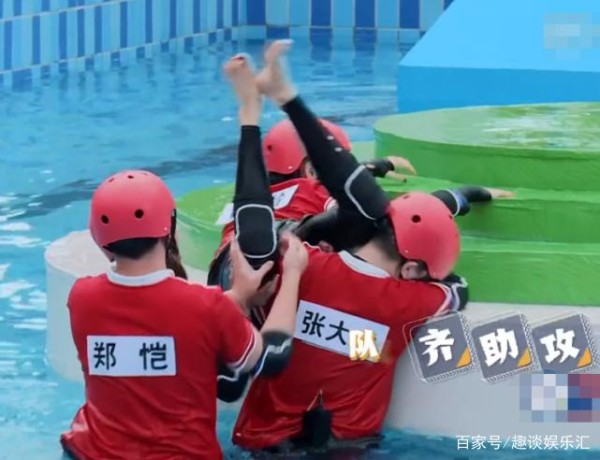 就比如在这次做游戏的时候,因为大家都是在水里面身上都湿了,在争椰子的时候大家都是非常踊跃的去参加的,而张大大却害怕这个,害怕那个,怂的不敢往前走,然后他就在水里帮忙,让女嘉宾往前冲着抢叶子,在黄龄上台的时候,Baby拖着黄龄其实就够了,但是张大大也想要帮忙,他就用手扶着黄龄的腿,把她往前推,其实这个时候就已经觉得不是很合适了,毕竟他是男明星,对吧?对于不熟悉的女明星,还是要有一些距离感的。