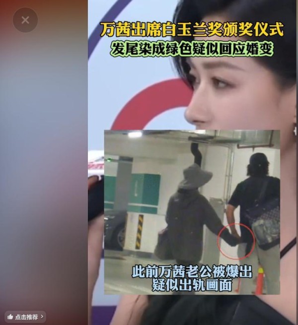 2024年5月,某狗仔团队放出三段视频,直指万茜的摄影师丈夫与一名神秘女子同入酒店车库、共处数小时并先后离开。 尽管网友一度猜测女子是万茜本人,但后续证据显示,当时万茜正在横店拍戏,行程无法重合。 更耐人寻味的是,绯闻发酵后不久,万茜公开亮相时,长发末梢赫然挑染了一缕鲜绿色。 在中国文化语境中,这一颜色常被联想为“婚姻背叛”的隐喻,网友瞬间将其解读为无声反击。