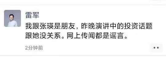 议论潮起之后的8月11日,雷军和小米内部人士的专门“辟谣”,也就可以理解了:“我跟张瑛是朋友,昨晚演讲中的投资话题跟她没有关系,网上传闻都是谣言。”