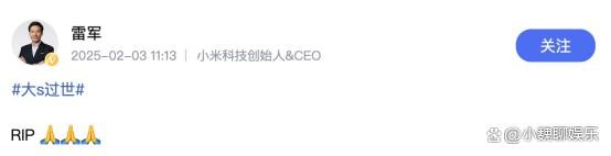雷军作为一个在科技圈呼风唤雨的人物,竟然也关注着娱乐圈的动态,这本身就有点意思。再看看他悼念大S的举动,更让人觉得这位“雷布斯”不只是个埋头搞技术的理工男,还挺有人情味的。