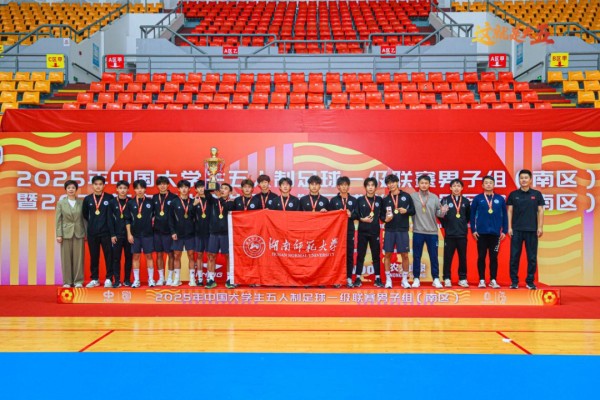 近日,2025年中国大学生五人制足球一级联赛(南区)总决赛在浙江湖州体育馆落下帷幕。湖南师范大学男子足球队与北京理工大学、上海交通大学、南京大学、重庆大学、武汉大学、四川大学、东华大学、华中科技大学、湖北大学、三峡大学、华中师范大学、中南大学等全国各高校24支强队经过多轮角逐后,夺得了2025年中国大学生五人制足球一级联赛男子组(南区)“冠军”。>>详情:湖南日报