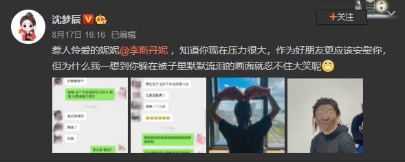 收到李斯丹妮发来的消极消息,沈梦辰的第一反应不是安慰,而是哈哈大笑,然后把聊天记录发到了微博上,并@李斯丹妮本人。
