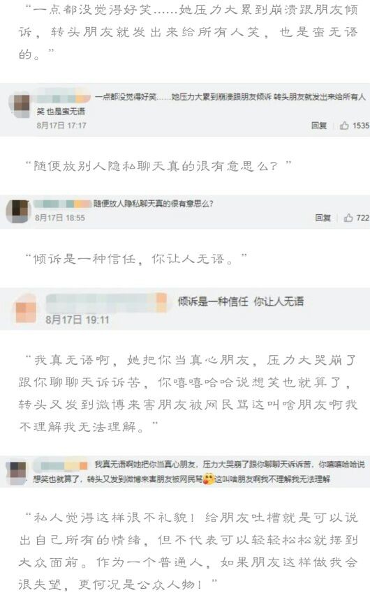 沈梦辰被骂上热搜了,因为几张微信聊天截图,是好友李斯丹妮在倾诉自己最近压力大,一度濒临崩溃: