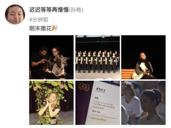 1月6日,孙俪的妹妹孙艳在社交平台上分享了一组自己期末演出的照片,并开心发文:期末撒花!