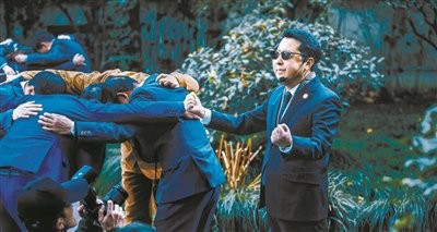 影片的空洞感,还源于对“阳光俱乐部”这一核心设定的粗浅描画上。这个信奉“让阳光照进心房”等心灵鸡汤的成功学组织,本应成为折射现实的一面镜子,揭示投机者如何利用个体焦虑去牟利,但影片却多停留在展示口号本身的荒诞性上,并未能深入挖掘其背后的运作机制。倒是贾樟柯带着山西口音的爆笑演绎,让人感受到他由衷地享受和沉浸在自己的表演中。