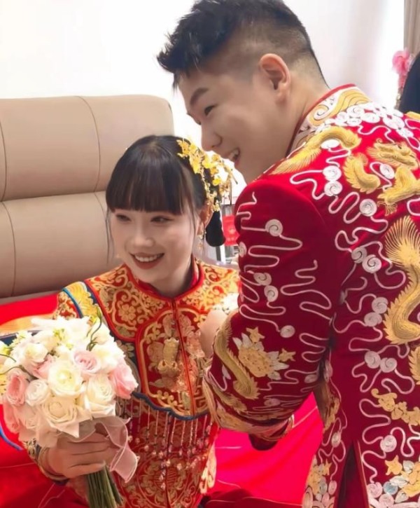 回到家一看,新郎迎娶新娘的环节都快结束了,新婚夫妇俩那叫一个欢喜,男的帅女的靓,特别般配。