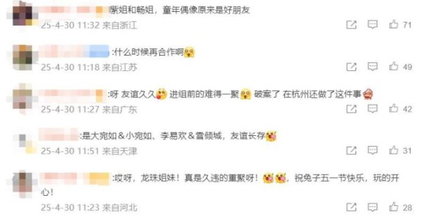 该条微博下方,网友们纷纷在评论区陷入“回忆杀”,留言称“孝庄秘史的友谊”“龙珠姐妹”,并询问“什么时候再合作啊”。