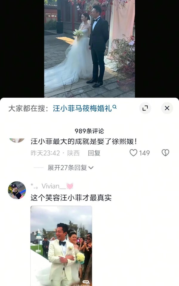 虽然外界的声音纷纷扰扰,他和马筱梅的婚礼还是显得别有一番风情。