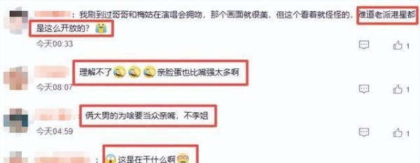 当然,也有网友表示理解,觉得朋友之间亲吻就是感情深的表现,不用上纲上线。
